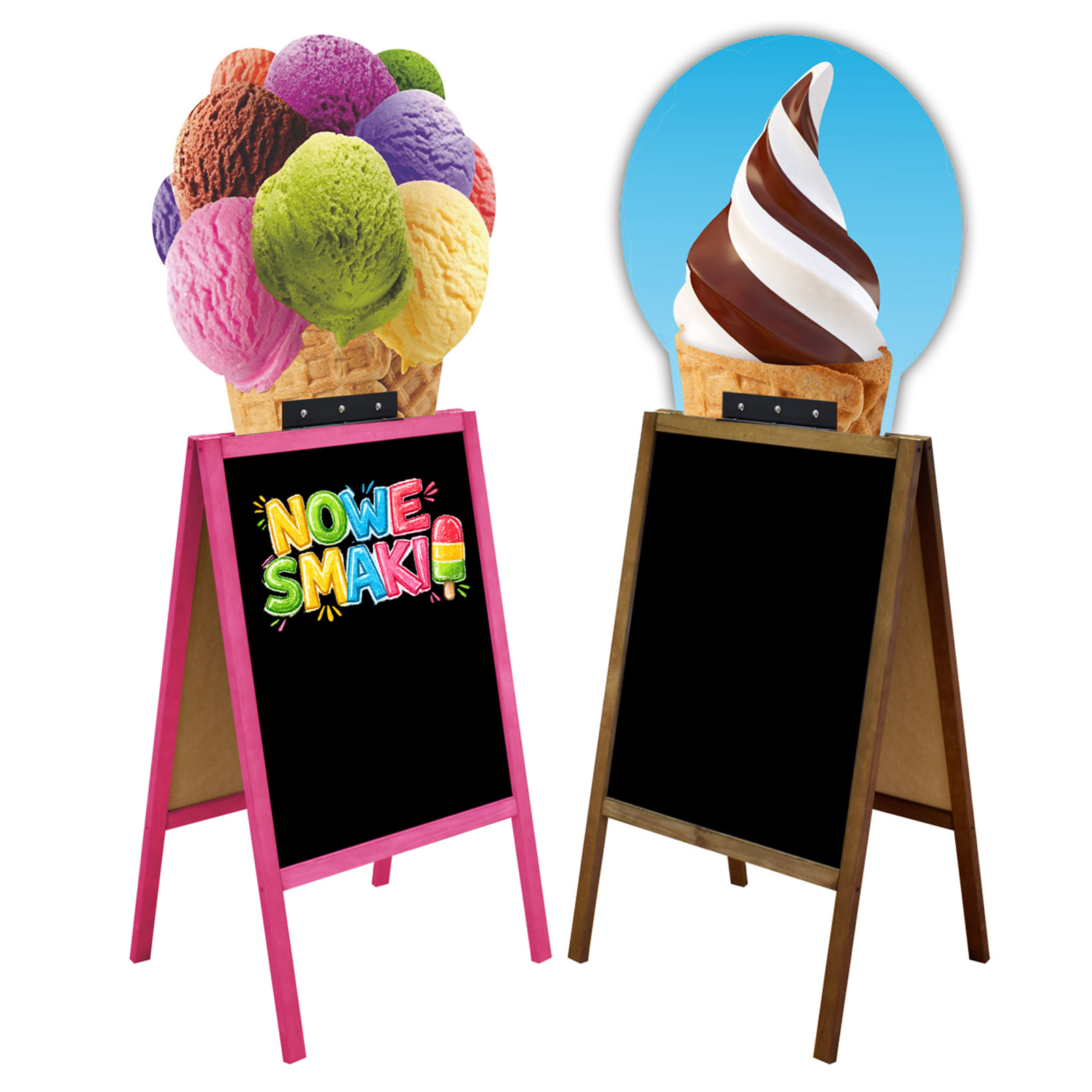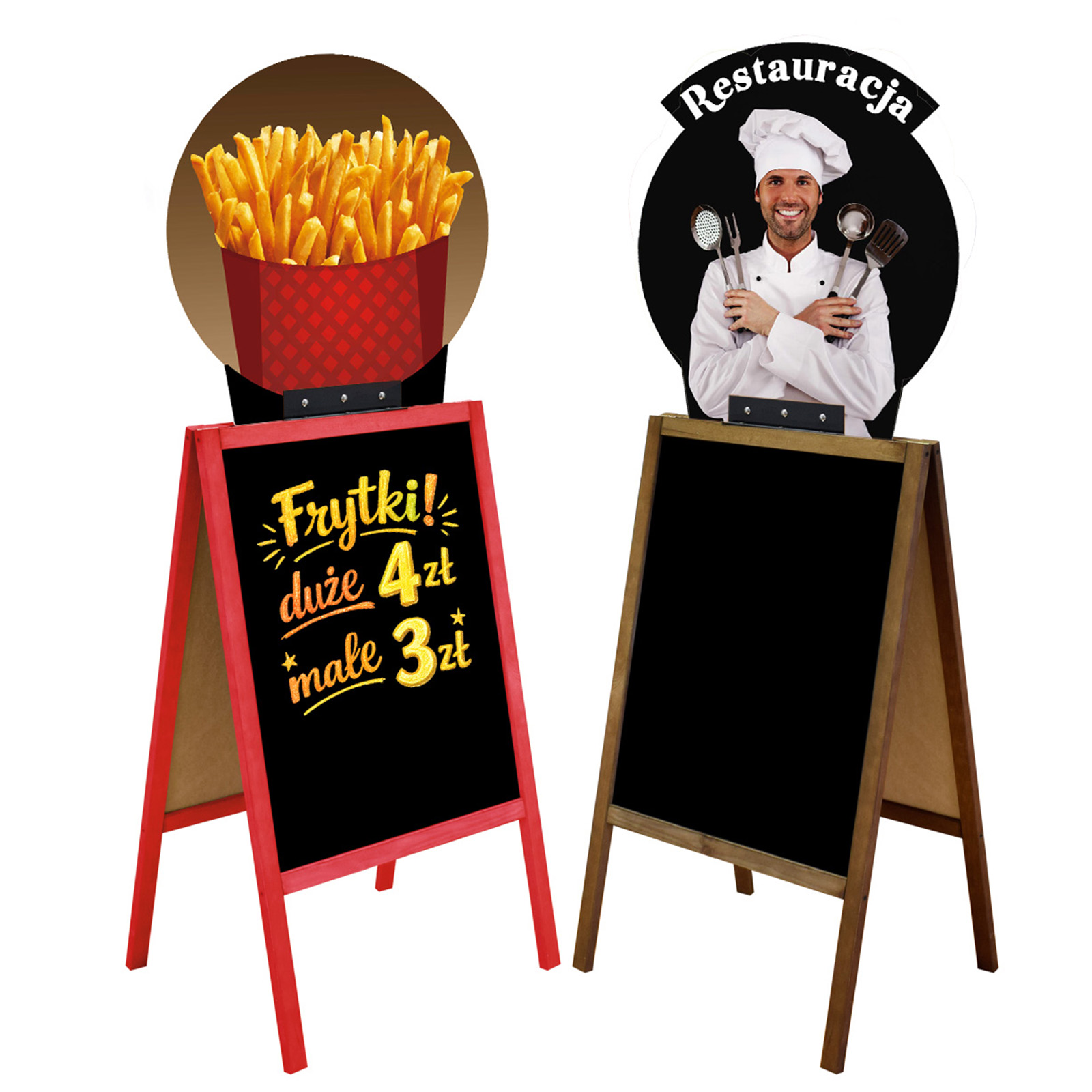 - potykacz dwustronny, reklamowy z tablicą kredową